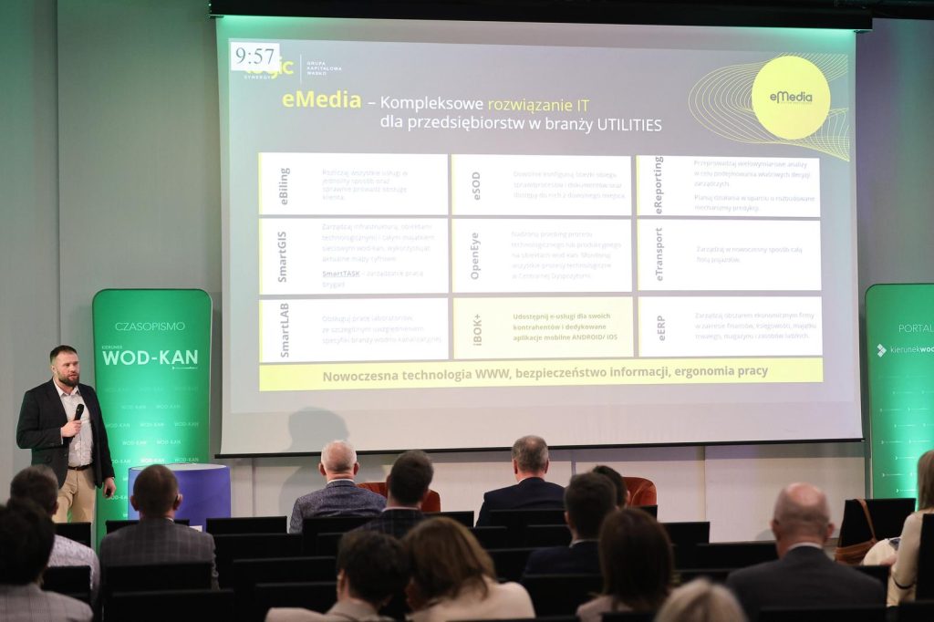 Jednym z istotnych punktów programu było wystąpienie Krzysztofa Dudy z LogicSynergy pt. „iBOK+ – cyfrowa przewaga Twojej firmy”. Prezentacja poświęcona była nowoczesnym narzędziom wspierającym cyfryzację obsługi klienta oraz optymalizację procesów biznesowych w przedsiębiorstwach wodociągowo-kanalizacyjnych. Duże zainteresowanie uczestników oraz liczne rozmowy po prelekcji potwierdziły, że skuteczna i bezpieczna transformacja cyfrowa jest dziś jednym z priorytetów branży.